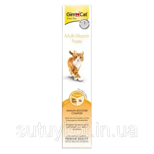 Мультивітамінна паста з комплексом із 12 цінних вітамінів, бета-глюканами й біологічно якісними рослинними оліями для котів. Дає змогу побалувати улюбленця апетитним частуванням із користю для його здоров'я.